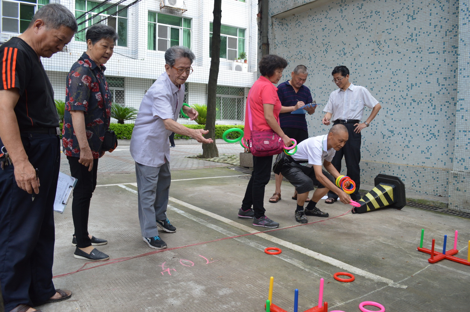 本次运动会共设扔沙包、投飞镖、套圈圈、羽毛球投准、门球撞瓶等五个项目,分70岁(含70岁)以上组和70岁以下组进行比赛,每个项目设一、二、三等奖若干名。有90多位离退休老同志参加。他们个个兴致勃勃、跃跃欲试,以阳光的心态认真完成每个项目比赛。