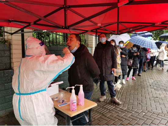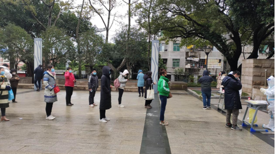 在工作人员的引导下,参检教职工戴好口罩、间隔一米、有序排队等候,全体参检人员依次扫码、进行口腔咽拭子标本采样,即采即走,整个过程井然有序,500余人的核酸检测采样工作顺利结束。另外,学校还于2月17日、19日在校外组织教职工开展了开学前的统一核酸检测工作。