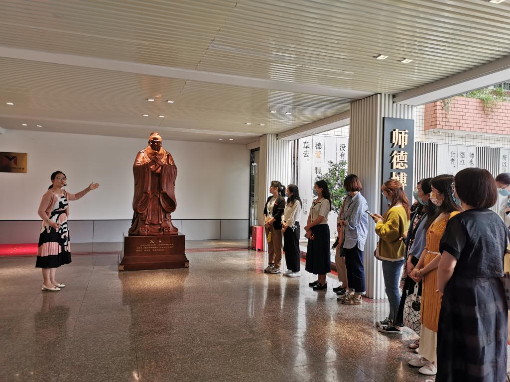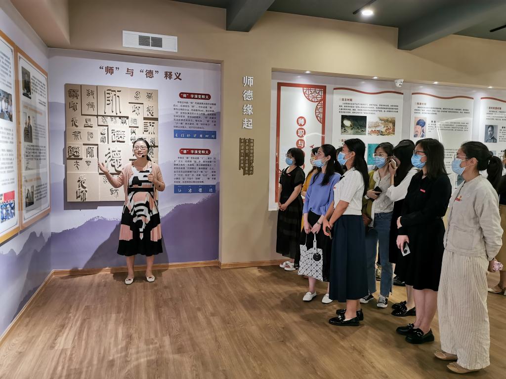在师德博物馆负责人张惠敏的带领下,讲解员林倩为我校教师一行进行了详尽的解说。教师们先后参观了“师德缘起”“师德涵蕴”“师德承载”“师德典范”“福建教育学院师德建设”五个基本陈列馆,系统学习了师德师风建设的发展历程和传承特色,通过馆藏文献、文物等展品,了解古今师德内涵和历史传承,感受到了师德师风的模范力量。