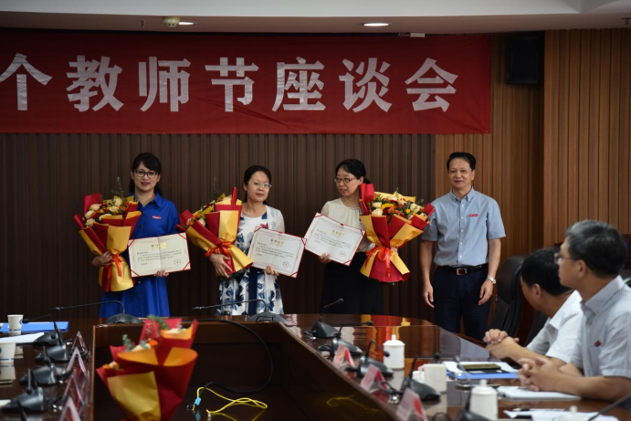 浓浓尊师意,款款感恩情。在教师节到来之际,9月8日上午,福建开放大学以“躬耕教坛 强国有我”为主题召开庆祝第39个教师节座谈会。校领导陈兴炎、吴国荣、马成斌、沈光辉、王幼新、吴建铭出席座谈会,从教30年荣誉证书获得者、“国家开放大学优秀青年教师”荣誉称号获得者、2023年新入职教师代表、首批优秀中青年骨干教师代表,以及各部门、学院代表参会。座谈会由校长吴国荣主持。