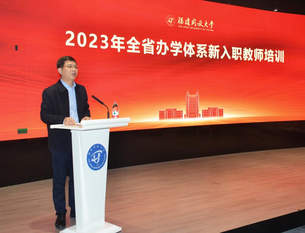 在开班仪式上,李正光代表学校向全省办学体系新入职教师表示欢迎。他指出,《福建开放大学综合改革方案》提出,学校要建设成具有国际视野、国内一流、特色鲜明的高质量省级开放大学。实现学校的建设发展目标,全省办学体系的人才队伍是关键。作为新入职教师,要不断提高思想认识,增强躬耕教坛、强校有我的责任感和使命感。